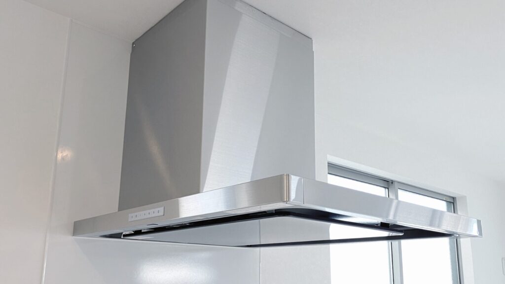 キッチンの中では意外と軽視されがちな設備ですが、これが無いと棚や壁がベタつく、天井カーテンが黄ばむ、においが残り続けるなどの問題が起こります。