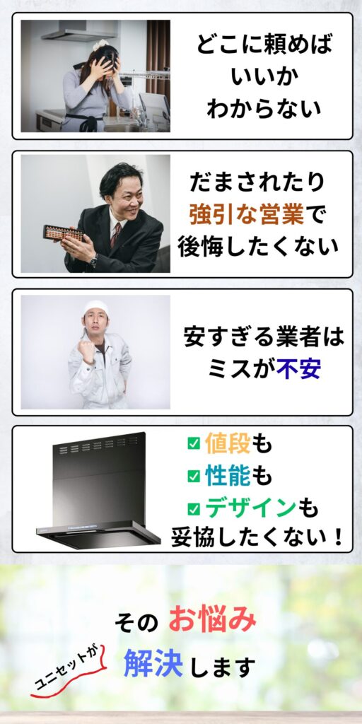 ユニセットは数少ない「メーカー工事」ができるお店。器具施工のリフォームで2000件以上の実績があります。豊富なノウハウでお客様の「不安」を「安心」にリフォームいたします。