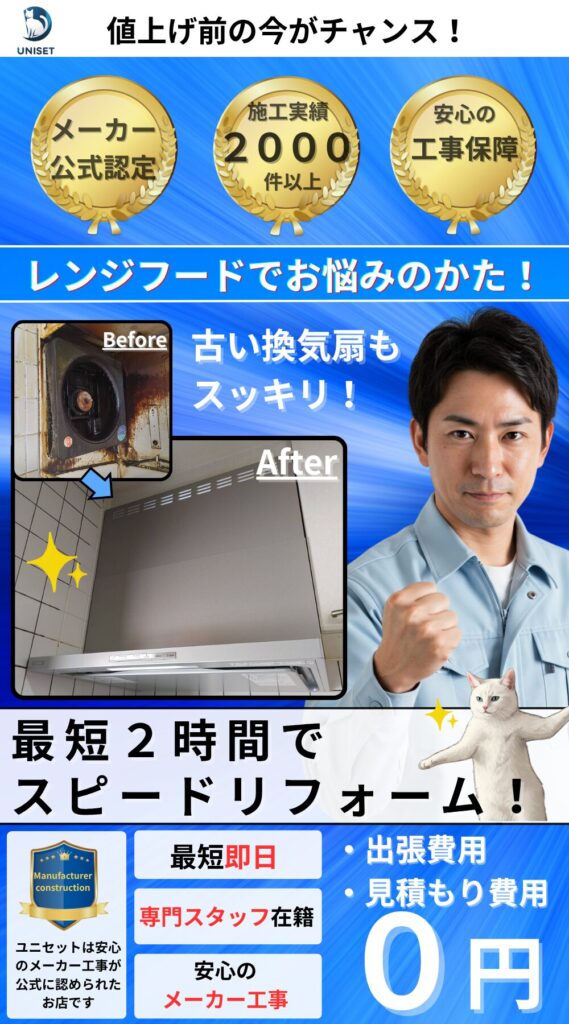レンジフード交換には、建築基準法で決められた施工ルールがあります。